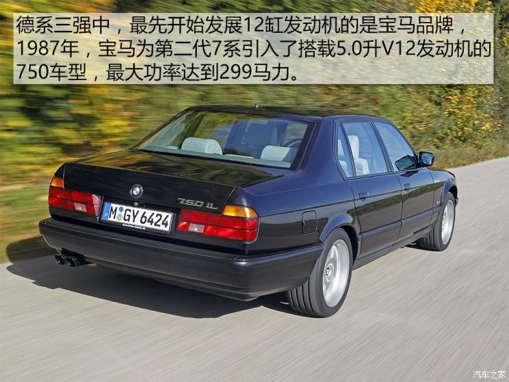 德国豪华汽车品牌从80年代中后期开始发展自己的12缸发动机,首当其冲的是宝马品牌。1987年,代号E32的第二代宝马7系旗舰轿车中,首次加入了配备5.0升V12发动机的750i车型,最大功率达到299马力。从那时起,V12发动机一直伴随着7系的升级换代。如今,宝马7系发展至代号G11的第6代,旗舰型号为搭载四驱系统的M760Li xDrive。在2019年初,中期改款的M760Li xDrive在中国全球首发,它的心脏是一台6.6L双涡轮增压V12发动机,最大功率达到了610马力。