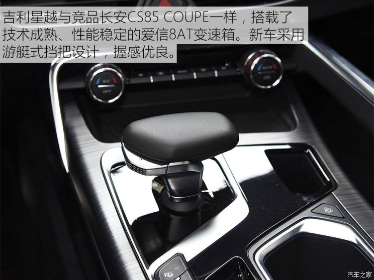 星越作为吉利抢占轿跑SUV细分市场的首款车型,其上搭载了丰富的电子配置,其中包括自适应巡航、车道保持、自动泊车等驾驶辅助系统,此外新车还搭载了最新的GKUI 2.0智能多媒体系统,可实现众多智能互联功能。深耕中国市场多年,吉利对中国市场的了解足够深入,也善于引领行业设计和技术潮流,星越车型便是吉利在设计和技术上引领风潮的一次尝试。当然,开放的市场必然会有激烈的竞争,吉利星越上市后将直接与长安CS85 COUPE和长城F7x竞争,究竟鹿死谁手呢?不久后,市场将会给出答案!(图/文/摄 汽车之家 常庆林)