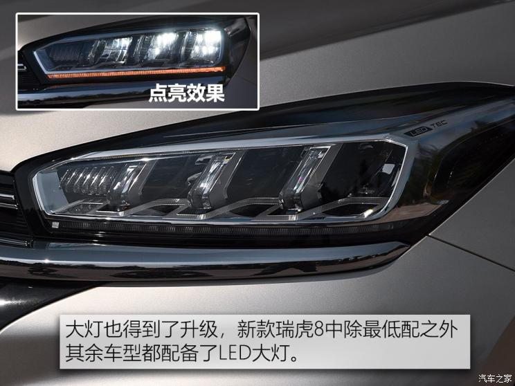 其实2018款瑞虎8所使用的虎踞式前脸造型已经给人留下了非常深刻的印象,这次新款瑞虎8在外观上所下的功夫是年轻化。