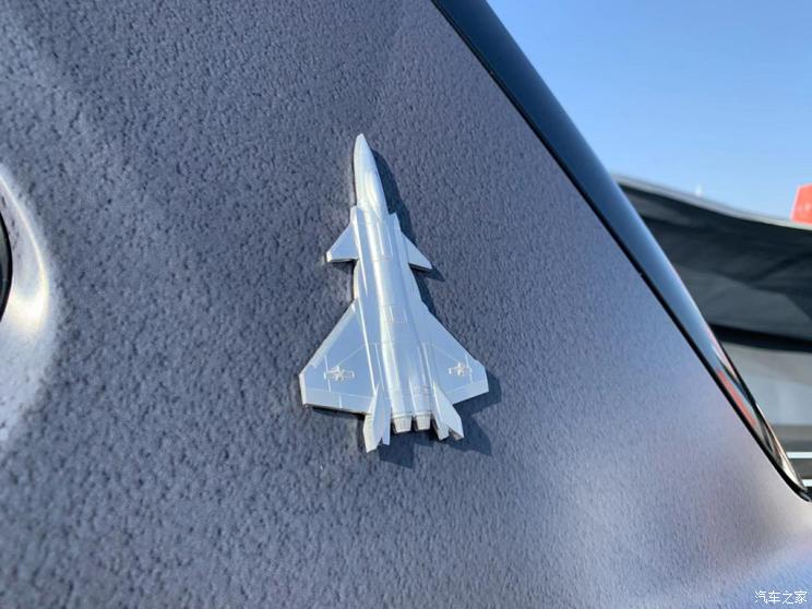 内饰方面,由于官方并未开放其内饰进行展览,我们通过车窗可以看到,新车座椅采用织物配合真皮混合搭配处理,内部加入空军迷彩伪装元素进行点缀,配合头枕上方的歼20战斗机刺绣,十分霸气。