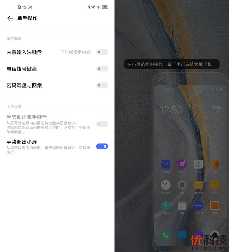 考虑到不同手掌尺寸用户的操作习惯,系统内还支持单手操作功能,使用起来也是非常的方便,仅需要单手完全可以操控手机。