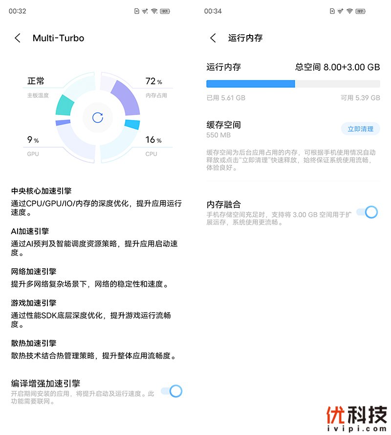 与此同时,iQOO Neo5 活力版还支持“内存融合”技术,可提升应用的打开和切换速度,通过算法优化,把手机部分ROM扩展为RAM使用,扩大运存能力。并且配合着所搭载的Multi-Turbo系统通过调整CPU策略、优化框架和recover部分、智能调度资源和利用效率,实现帧率、游戏影音体验、系统流畅性稳定性、应用响应速度和散热等方面的全方位提升,为用户带来流畅稳定的使用体验。