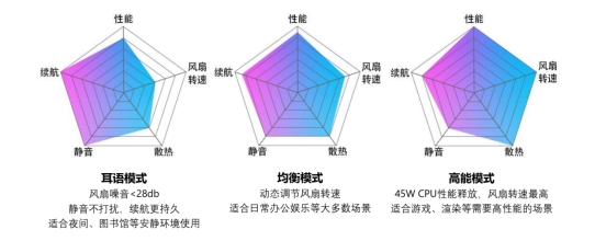 想要保持稳定的战斗力也离不开出色的散热系统加持。华硕无畏15i 2023配备的冰锋散热系统采用了87叶片超大风扇,搭配6mm+8mm双加粗热管、双出风口,可营造大风量+大风压,疾速横扫热量,让整机功耗释放可稳定在45W,为高负载应用提供充沛性能支撑。结合Fn+F快捷组合还可随心切换耳语、均衡、高能三档模式,为年轻人打造全场景的轻薄本使用体验。