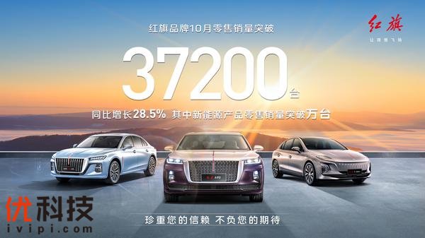 据公开数据显示,红旗品牌10月零售销量突破 3.72 万辆,同比增长 28.5%,其中新能源产品零售销量突破万辆。稳定增长的销量背后,是红旗品牌的高产品价值、可靠品质、优质服务等多方面综合实力的体现,也是红旗坚持极致产品服务体验的正向市场反馈。