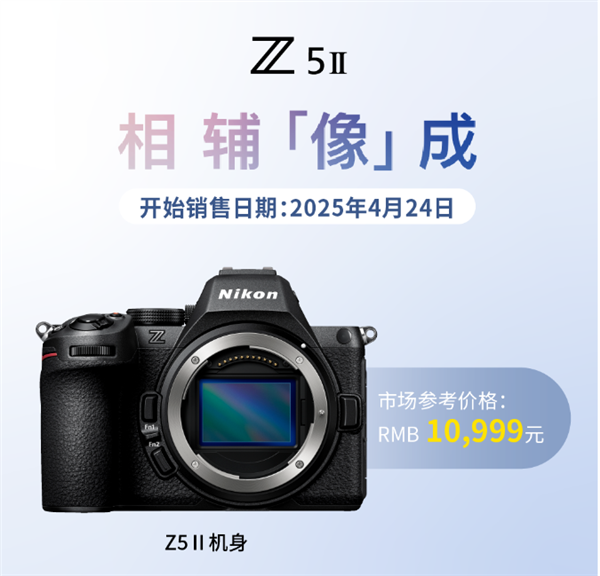 尼康Z5 II相机已于今日正式发布,起售价为10999元,并将于4月24日正式开售。