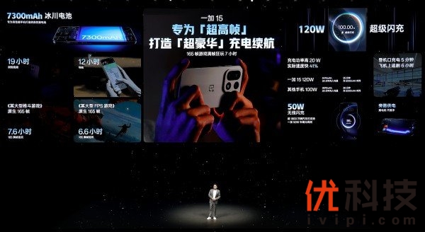 一加 15 搭载专为高性能手机打造的 7300mAh 超大「冰川电池」,配合 120W 超级闪充,带来旗舰档位手机中最豪华的充电续航组合。一加 15 所搭载的电池采用新一代仿生硅碳材料与双电芯结构,能量密度高达 814Wh/L,足以支撑全天候续航需求。一加 15 支持行业领先的 120W 有线闪充,同时还配备 50W 无线闪充,为用户带来更加灵活的充电选择。针对游戏场景,一加 15 带来行业首发「局间补电」技术,还搭载行业领先的「旁路供电」功能,确保玩家在长时间对战中也能保持满血状态。
