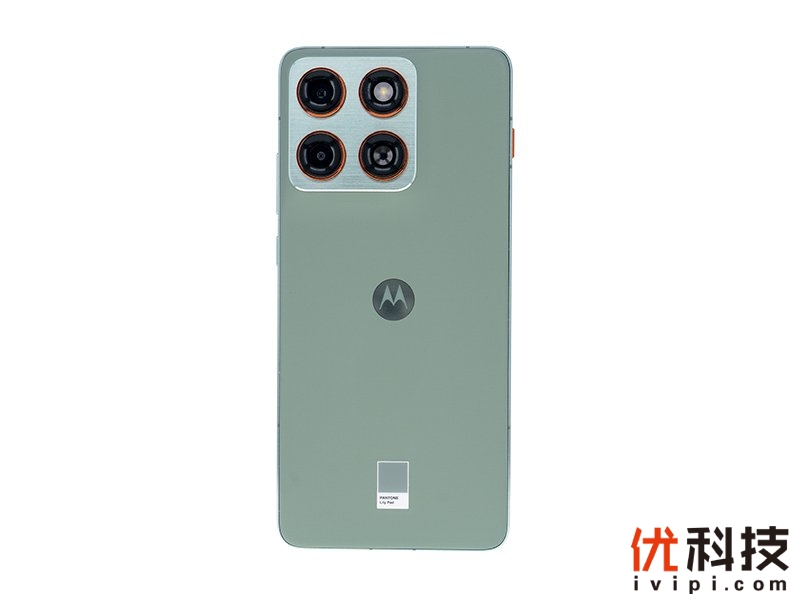机身细节设计方面,联想moto X70 Air的机身材质采用了舒爽亲肤并且不易沾染指纹的PU材质,同时全系采用了Pantone高定色,而镜头组部分则是采用了金属材质拉丝处理,质感以及耐用性更加出色,同时镜头环还采用了极具辨识度的撞色设计,起到了点睛的作用,至于机背中心点则是我们非常熟悉的moto蝙蝠logo,而底部则是Pantone标识。