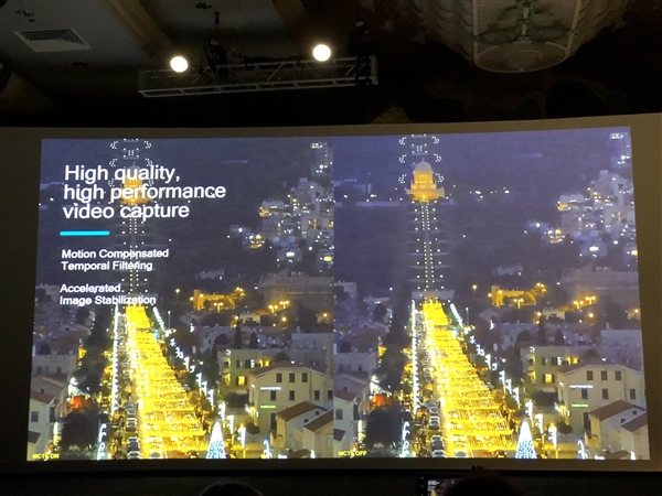 算法方面,骁龙845支持动作补偿,可以将拍摄视频时临近的帧图像补偿到当前帧上,实现更高的亮度和清晰度。
