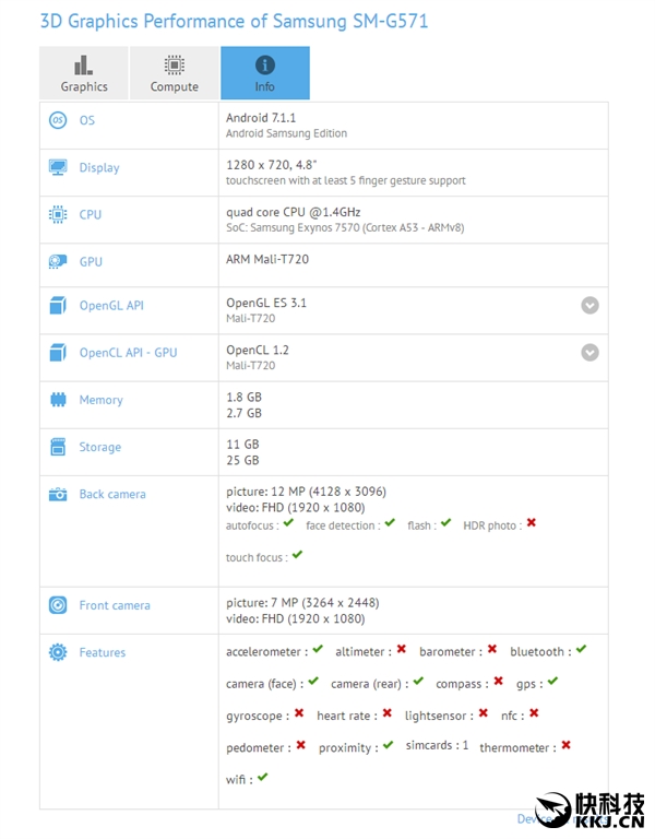 其实是新款的Galaxy J5 Prime 2017,GFXBench曝光了它的存在,编号SM-G571。