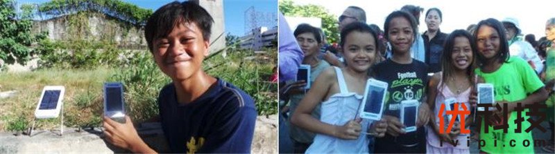 通过“ShareTheLight”活动拿到太阳能灯的孩子们