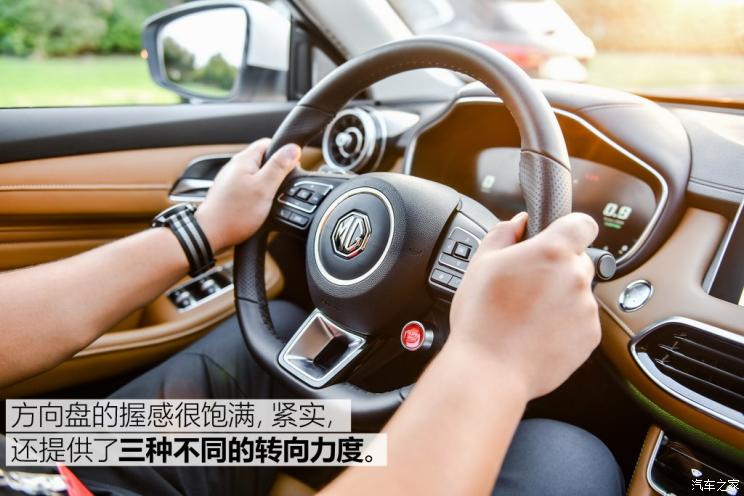 这台车和名爵6一样配备了XDS电子差速锁,并且新的EPS-pro助力系统配备了扭矩转向补偿和侧风补偿功能,这对于车辆在恶劣天气下行驶会有安全方面的提升。方向盘有三种力度可调,最轻和最重之间区别很明显,但整体手感都比较油润,顺滑。最重状态下对女生来说可能稍有些沉,但换个角度来看,你也可以认为是最有安全感。