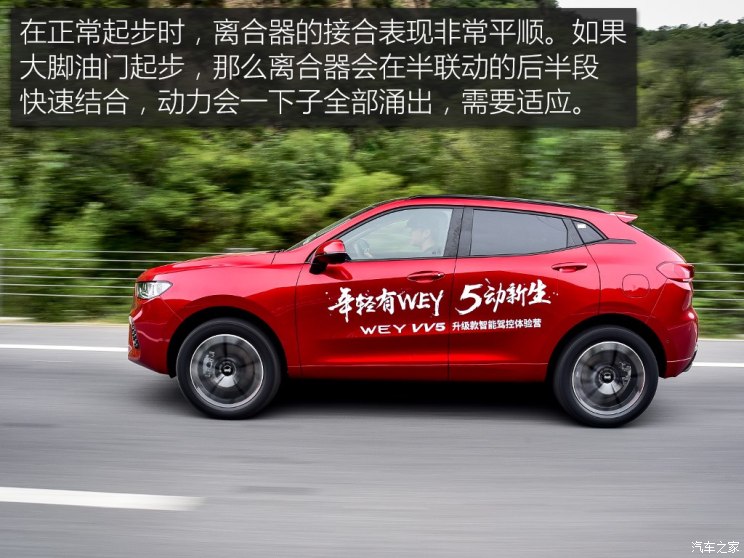 在蜿蜒的山路上快节奏地驾驶时,VV5除了拥有出色的刚侧倾能力之外,底盘的循迹性也比较强。即使将其逼至濒临极限,车身也是以出现的非常渐近的转向不足来逐渐突破抓地力,并且车身电子稳定系统也会同时给内侧车轮柔和地施加制动力,将车头拉回正常轨迹,让人心里特别有底。
