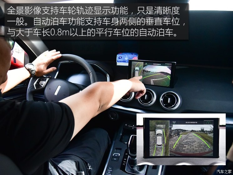 我们在场地中模拟了交叉轴情况以检验电子限滑功能。虽然台架高差不大,但由于VV5的悬架行程不算长,在体验过程中依然出现了一到两个车轮离地的情况,当低附着力车轮发生空转大概1、2秒的时间之后,电子系统开始给空转车轮施加制动力,最终成功脱困。据厂方介绍,系统在侦测到两侧轮间转速差达到100转/分钟时系统才会开始施加制动力,介入不算及时,不知道是否有和涡轮发动机输出特性与对双离合变速箱的保护有关。