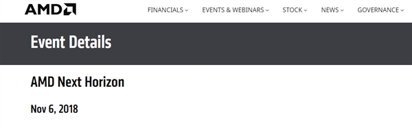 AMD在官网的投资者关系页面的“大事件”列表中更新,11月6日将举办“Next Horizon”活动。