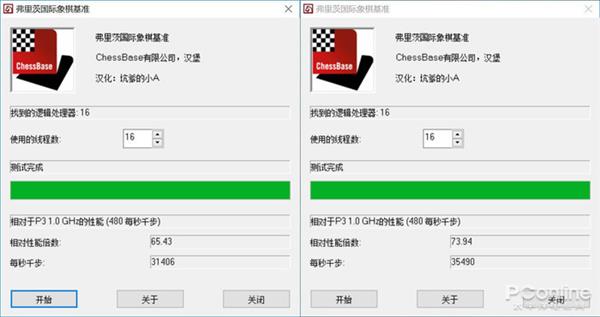 经过超频后,Core i9-9900K的象棋分数涨了大概13%,8核16线程同时提高0.3GHz的效果还是相当不错的。