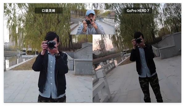 多说无用,我们直接把口袋灵眸与最新的 GoPro HERO 7 并排架在一起,然后通过各种抖动场景来看看谁拍出来的视频更稳。