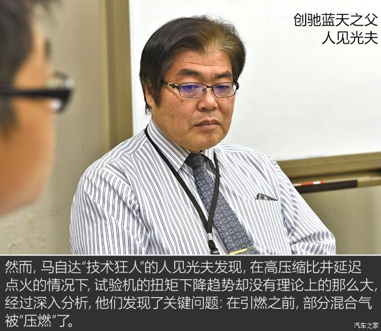 没错,在开发第一代创驰蓝天发动机的时候,由于超高压缩比与延迟点火设计,他们发现这台试验机的扭矩竟然没有出现特别明显的衰减问题。在经过大量实验与研究之后,他们发现,原来在超高压缩比设计前提下,部分混合汽会实现压燃现象,而这就相当于把实际点火时间提前了,从而避免了扭矩大幅度衰减的问题。(想要了解更多关于人见光夫的事情?点这里:人见光夫与创驰蓝天)