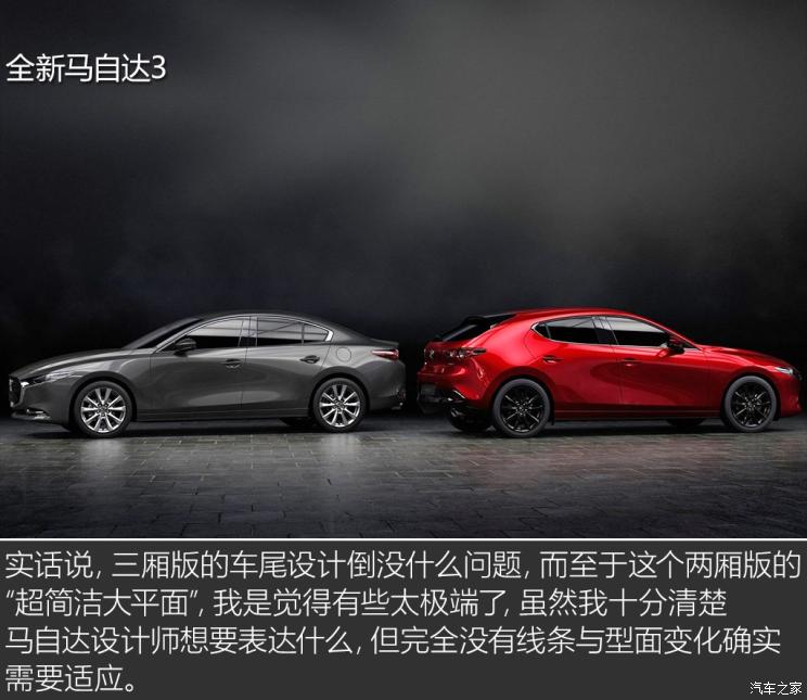 至于说新设计语言最大的争议点,相信就是这个车尾了。的确,新魂动设计不仅让全新马自达3的车头、侧面都存在差异,车辆尾部侧面的形面塑造手法上可谓截然不同:两厢版力求用简洁形面去突出车轮,让整体看上去更像是后驱车的那般动感,而三厢版则是用隆起肩线与层次感分明的肌肉型面,去创造一种略带优雅稳重的感觉。