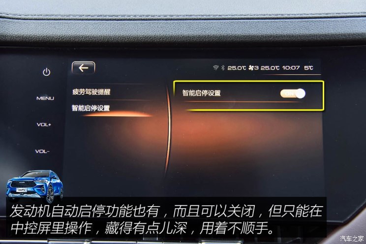哈弗F7全系标配了电子手刹和自动驻车,自动驻车单独工作的时候很好用,轻点油门就会继续前进,但是如果和发动机自动启停都介入工作,会感觉两个系统的工作步调不太一致,有拖拽感。另外就是发动机自动启停需要在屏幕里才能操作关闭,切换时需要在菜单里找,有点儿繁琐。