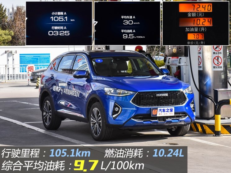 油耗测试总共行驶了105.1公里,路况涉及拥堵、环路以及部分高速路,在平均速度30km/h、A/C OFF、发动机自动启停全程开启的情况下,最终实测油耗为9.7L/100km,稍高于我们对于紧凑型SUV的推荐值。值得一提的是,哈弗F7的行车电脑会将怠速时的油耗计算在表显油耗内,而最后的实测油耗和表显油耗数值非常接近,仅差0.2L/100km。