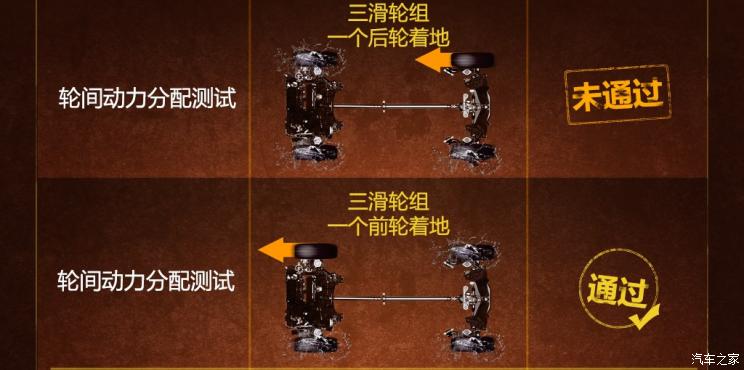 在经济模式,中央多片离合器断开,前轴获得100%的动力;标准、运动、雪地模式,前后轴动力会根据路况从100:0至0:100之间动态调整,大多数时间是前驱模式,一旦前轮打滑,会将动力分配至后轮;而泥地和沙地模式下,前后轴会固定以50:50分配动力,不过出于安全考虑,在速度超过40km/h后,锁止模式会自动解除。