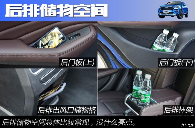 哈弗F7车内储物空间表现整体是能够让人满意的,尤其是前排,不仅常规位置都设置了容积不错的储物格,中央地台还做了镂空处理,容积能塞下两瓶555mL的瓶装水,这主要得益于使用了电子挡杆。后排储物空间稍逊色一些,但是满足一般的日常需求是没问题的。