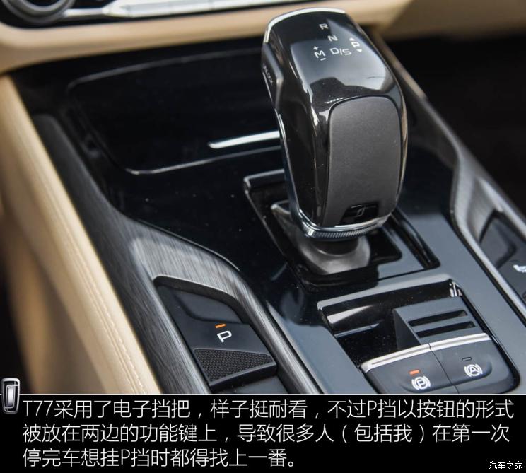 在车内其它的地方,无论用料或是配置,T77都做到了主流水准,中国品牌车型在这些方面一般都很舍得下本,T77想要跟它们竞争,做到这些是必须的。在此基础上,T77还有一个过人之处,那就是后排空调出风口,而且是全系标配。