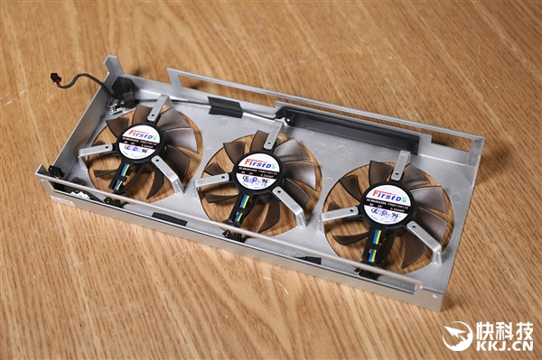 公版AMD Radeon VII外壳正面采用银白色的铝合金材质,背板同样为铝合金材质,采用大面积的镂空处理,方便散热。