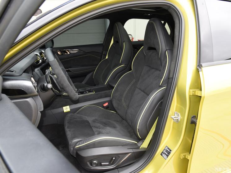 领克03+的内饰延续了领克03的布局,但高反差的配色方案带来了更强的视觉冲击力。配置方面,除全液晶仪表盘、中控大屏、电子挡把、电子手刹等原有高端配置外,领克03+还提供电动调节的一体式运动座椅,并可选装大面积Alcantara材质包裹的运动座舱(含方向盘、门板、座椅、中控台等)。