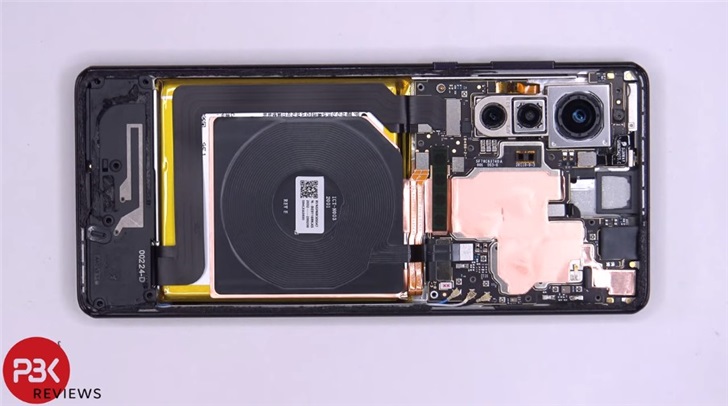 IT之家了解到,该机机身内部有大量的天线(支持5G的缘故),关键部件之间也有很多铜片用于散热,不过似乎没有任何散热用的液体容器。108MP的摄像头模块非常巨大,而振动马达有些小,但其实际效果不错。