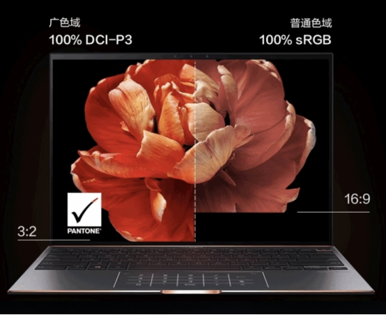 灵耀X纵横的B面同样充满着贵族气质。3:2显示比例的屏幕,相比于常见的16:9屏幕,在相同对角线长度下显示面积增加8%,纵向显示的内容增加19%;92%的高屏占比,在日常办公时,同尺寸屏幕下可以显示更多的内容,方便阅读、查找,减少翻页,提高工作效率;100%DCI-P3超广色域色彩表现,使画面显色更为准确生动。