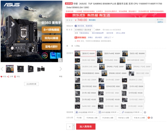 此外还有带WiFi 6无线网卡的TUF GAMING B560M-PLUS WIFI重炮手可入手,秒杀价849元,可享6期免息福利。购买链接:https://item.jd.com/100010397513.html