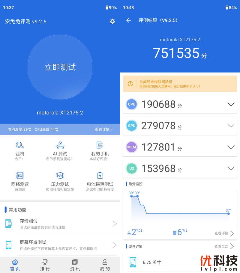 下面就到了每次体验必不可少的跑分环节了,虽然跑分并不能反映一款手机的真实性能表现,但是也可以给用户一定的参考。下面笔者就用目前市面上比较流行的几款跑分软件对moto edge S30进行测试。