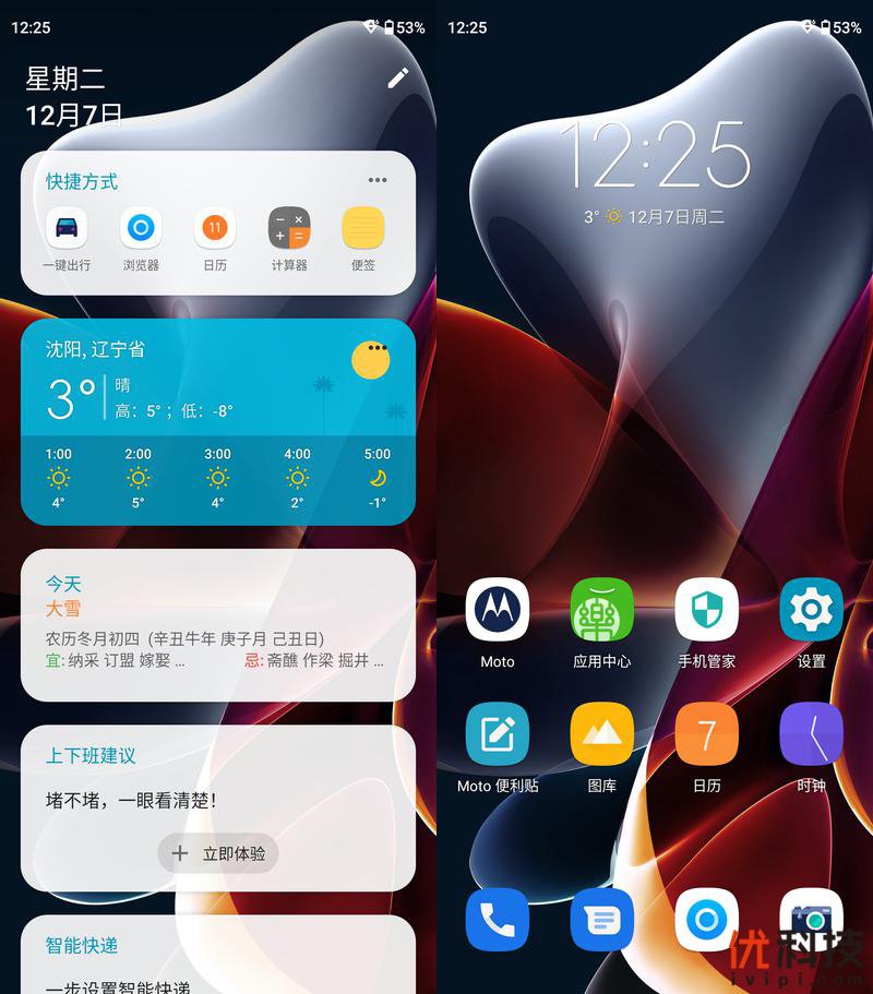 同时在系统中还增加了多种本土元素,也可以让用户更容易的上手。系统UI显示简洁大方,并且在负一屏也集成了多项实用快捷模块,例如一键出行、计算器、便笺、天气、日历、智能快递等等,可以让用户减少操作环节,快速地进入到应用程序。