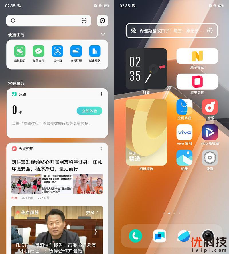 系统主屏设计更加的个性化,流畅度也是大幅提升,在部分场景,除了快,更加跟手、精准、理解并响应用户的所思所想。负一屏采用信息轻量化设计,多个卡片智能展开收起,保持第一视觉清爽干净,而便捷生活快捷方式也是支持自由设定。