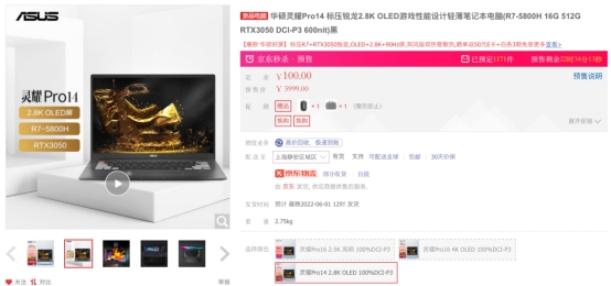 优势:锐龙7 5800H标压处理器、RTX 3050独显、整机60W性能释放;2.8K 90Hz OLED华硕好屏;DialPad虚拟旋钮