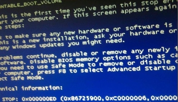 如果蓝屏代码出现“Ox00000OED”的字样,那意味着蓝屏的诱因主要是和硬盘、系统相关。其中系统损坏的概率比较大,而硬盘损坏的概率则相对较小,有可能是卷有问题。