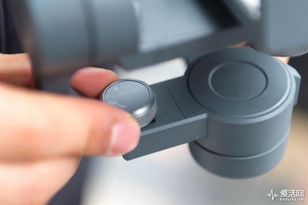 实际应用中要微调拍摄方向,更方便的方法是用摇杆。OSMO 2摇杆阻尼感适中,云台无论在起步、转动、停止的过程中都非常平稳,没有顿挫感。另外,OSMO 2电机使用了外置转动限位块,美观程度不如1代,但可转角度还剩多少,一目了然。OSMO 2在转动角度上比起一代也有了提升,特别是俯仰角度的调整,向下转动角度从1代的35°直接提升到了155°,能够适应更多千奇百怪的拍摄角度。当心仪的博物馆展品被人山人海包围时,举起OSMO 2,操纵摇杆让镜头向下俯视,你一定会收获很多羡慕嫉妒恨的眼神。