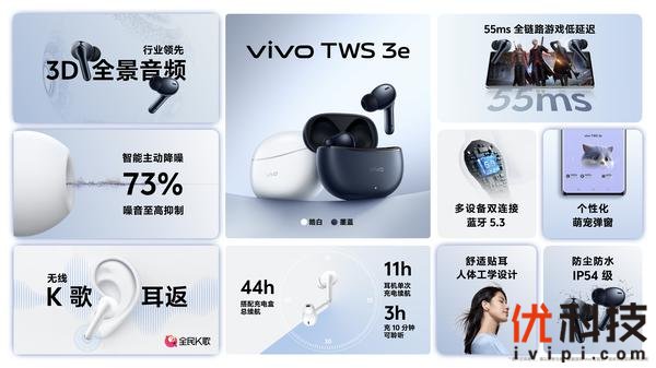 此次vivo TWS 3e全新发布,带来亮眼外观的同时,耳机实力同样可圈可点。沉浸环绕的听音体验突破TWS耳机赛道的音质水平;智能算法和内部构造双向发力打造出优秀的降噪能力,保护用户的通话隐私;44h总续航时长打破上限,真正摆脱电量焦虑。目前,vivo TWS 3e已在官网开启预售,欢迎前往商品详情页了解更多细节。