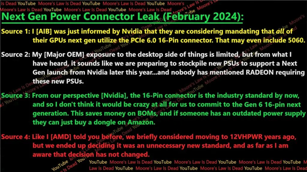 据国外媒体报道称,英伟达GeForce RTX 50系列显卡将原生配备PCIe Gen 6 的 16-Pin供电接口。