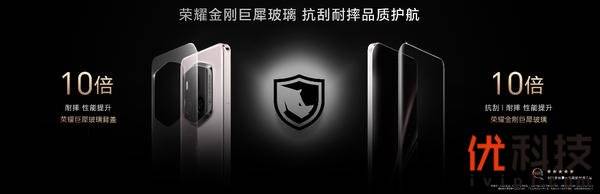 荣耀Magic6 RSR 保时捷设计正面覆盖荣耀金刚巨犀玻璃,基于第二代纳米微晶玻璃技术,以及跨界探索的全新高硬度耐磨损材料氮化硅镀层,实现10倍抗跌和10倍抗刮能力,除此之外,荣耀Magic6 RSR保时捷设计的背盖材质上也采用荣耀巨犀玻璃,带来超强的10倍抗摔性能,使得手机整机的抗摔能力更进一步,更加坚韧。
