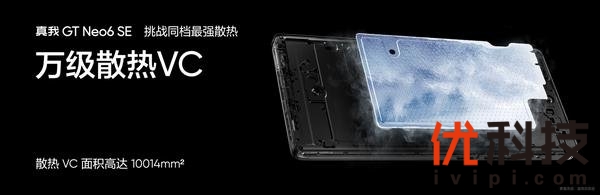 强大的散热是释放极致性能的基础。真我GT Neo6 SE为第三代骁龙7+配备同档超规格的万级散热VC,面积达到10014mm²。万级散热VC采用电竞旗舰级的双层立体结构,能提供更大的散热空间,极限散热能力更为出色。同时,为了保持低温手感,真我GT Neo6 SE全面优化了机身的导热材质和路线,搭载全新的中框冰封结构,手机侧边温升至高可降低2℃,握持体验更舒适。
