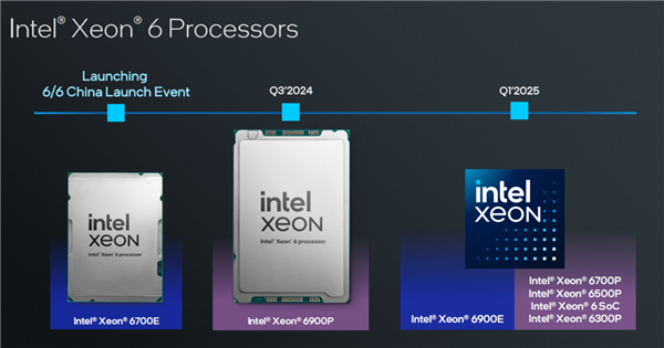 至强6 6000P系列代号Granite Rapids,只使用传统的P核(性能核),主打高性能计算、AI负载场景。