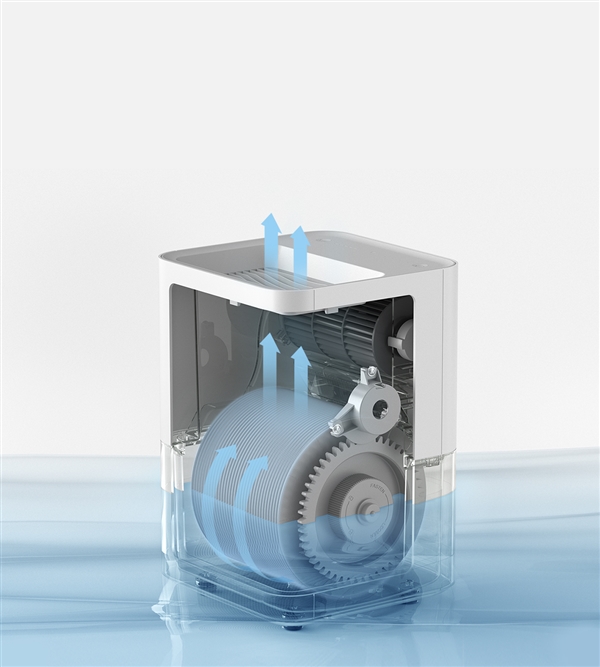 智米纯净型加湿器采用上下水电分离式设计,将水箱与电器组件分开。如果机身与水箱因外力分离,定位感应装置会使加湿器自动停止工作,以免内部贯流扇打伤手指,具备很强的安全性。产品的贯流风扇由直流无刷电机驱动,带来34.3dB(A)的低噪音和最高8W的低功耗表现。