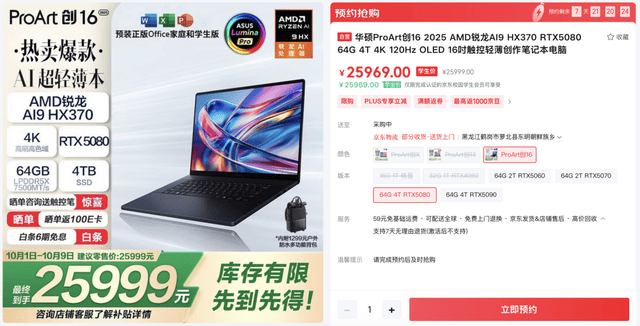 目前,全新华硕ProArt 创16 2025 AI专业创作本已在京东商城开启预约,10月1日正式开售,RTX 5090版本首发价29999元,RTX 5080版本首发价25999元,追求极致创作效率的专业内容创作者值得重点关注!