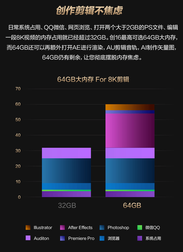 此外,它还内置了90Wh超大容量电池,支持100W PD闪充,续航持久;至高可选64GB LPDDR5X 7500MT/s高频内存与4TB SSD,为专业创作赋予更高效率与更多存储自由;采用华硕冰川Pro散热架构,采用双风扇+VC均热板架构,快速散热,保障强大性能持续输出。