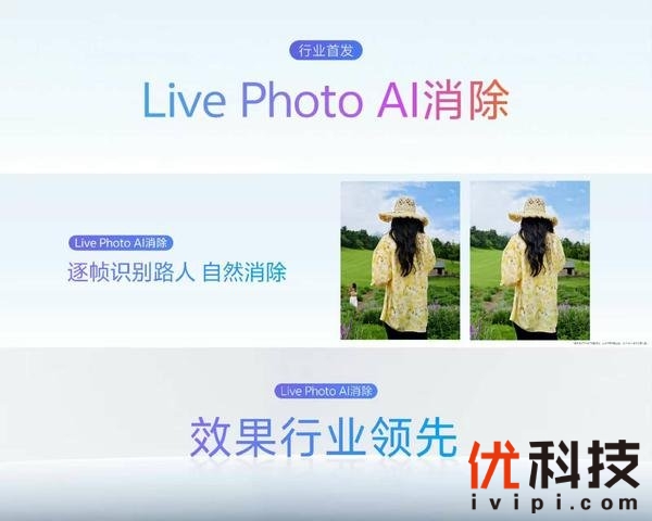 很多用户爱用Live Photo记录日常,因此vivo带来行业首发的 Live Photo AI 消除。它能智能圈选,逐帧识别路人、自然处理,让动态画面流畅无暇。为了让效果更自然,vivo自研Live Photo消除大模型,改善消除和填补过程中的常见痛点问题,整体效果行业领先。