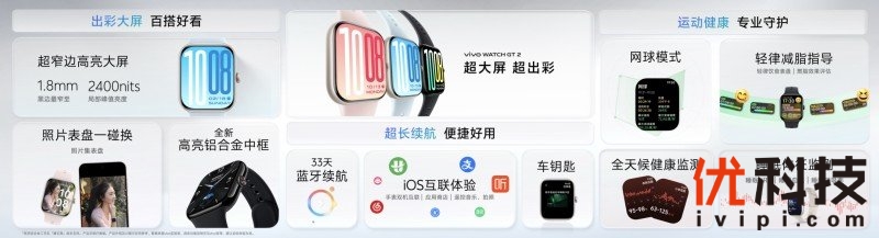 vivo WATCH GT 2 以超窄边高亮大屏为亮点,高达 2400nits 的局部峰值亮度堪称户外运动好搭子;支持照片表盘一碰换,尽显个性;在蓝牙连接状态下,长达“月”级的惊人续航力安全感十足。