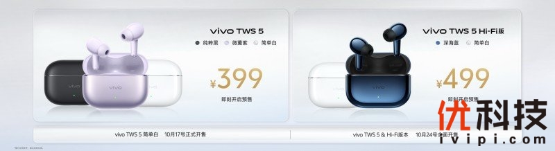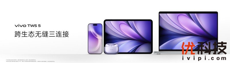 vivo TWS 5 标准版配色有“纯粹黑”、“简单白”和“微薰紫”,Hi-Fi 版配色则为“深海蓝”和“简单白”,上市价格 399 元起;vivo Pad5e 采用一体化轻薄金属机身,配色有“展蓝图”、“灰常好”和“紫定行”,提供 8GB+128GB、8GB+256GB、12GB+256GB 和 16GB+512GB 四种存储组合,还有柔光版可供选择,上市价格 1999 元起。此外,vivo 还推出组合优惠购,任意一款 IoT 新品搭配vivo X300 系列购买将额外优惠 50 元,三款 IoT 新品中任意两款组合购买至高优惠 100 元。