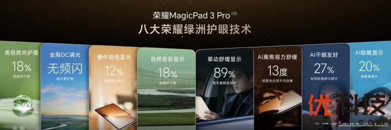荣耀MagicPad3 Pro拥有Pro级天花板配置,搭载13.3英寸165Hz高刷绿洲护眼屏,高刷新率畅玩3A大作,支持最新的荣耀绿洲护眼技术,通过AI全面模拟自然光缓解用眼疲劳,让玩家娱乐健康两不误。